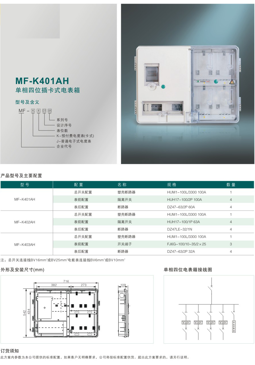 MF-K401AH 单相四位插卡式电表箱